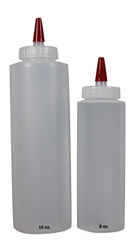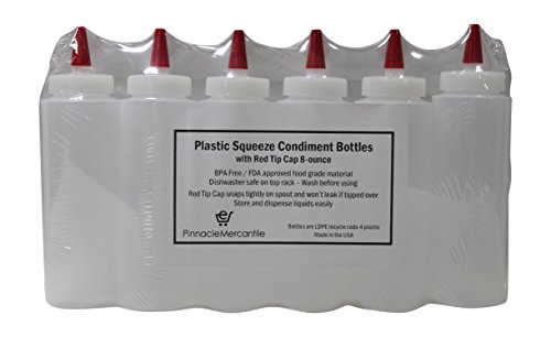 Easy Squeeze Plastic Condiment Bottles 8-ounce with Red Tip Cap - Set of 6