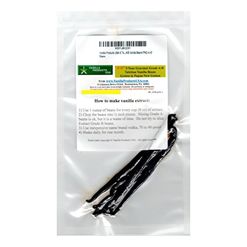 Vanilla Products USA 5 Tahitian Near Gourmet Grade A/B Vanilla Beans PNG 4~6"