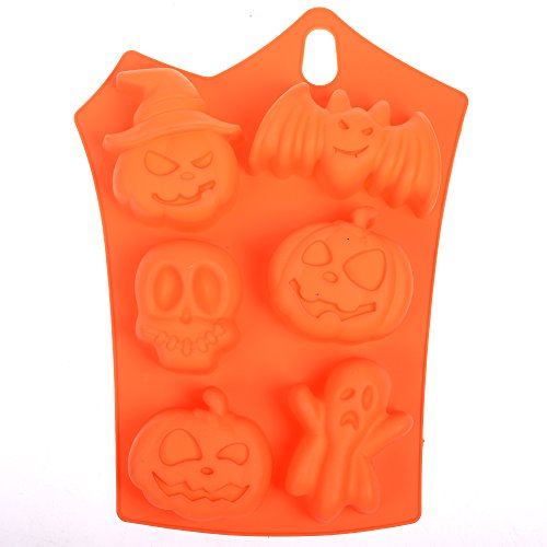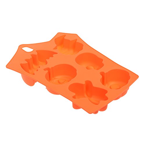 BCP Halloween decor Bat Pumpkin Face Skull Ghost Ice Cube Shapes Silicone jelly Chocolate Bread Soap Muffin Baking Cake Handmade Mold 9 x 6 Inch
