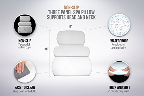 7 SUCTION CUPS: Seven powerful suction cups uniquely help eliminate common and irritating pillow slippage to create the most relaxing bathing experience.