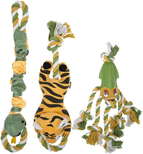 -. Binding : Misc. -. Brand : Animal Planet -. Color : orange -. EAN : 0694202214848 -. Feature : Designed for indoor or weather-protected areas. Inspect product before every use for tears or frays / For pet use only / Each set includes a stylized snake, tiger and squid for your pets entertainment -. Label : Merch Source- Pets -. Manufacturer : Merch Source- Pets -. Model : 1644773 -. MPN : 1644773 -. PackageQuantity : 1 -. PartNumber : 1644773 -. ProductGroup : Pet Products -. ProductTypeName : PET_SUPPLIES -. Publisher : Merch Source- Pets -. Studio : Merch Source- Pets -. Title : Animal Planet 3-Pack Pet Toys -. UPC : 694202214848