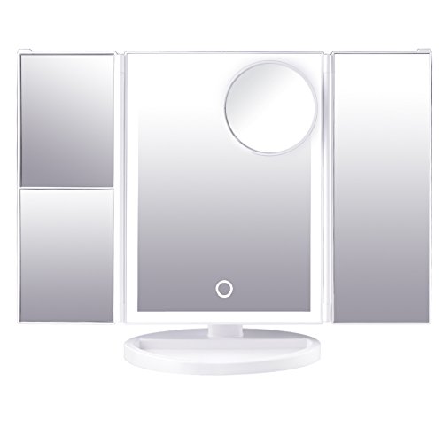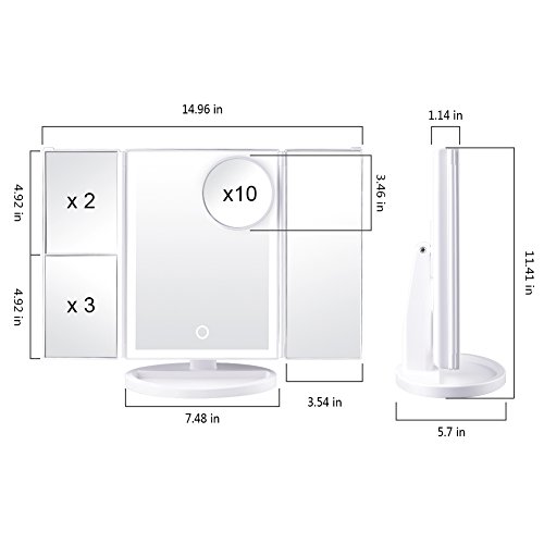 DUcare Led Lighted Vanity Makeup Mirror Tri-Fold 10x+1x/2x/3x Magnification with Touch Screen
