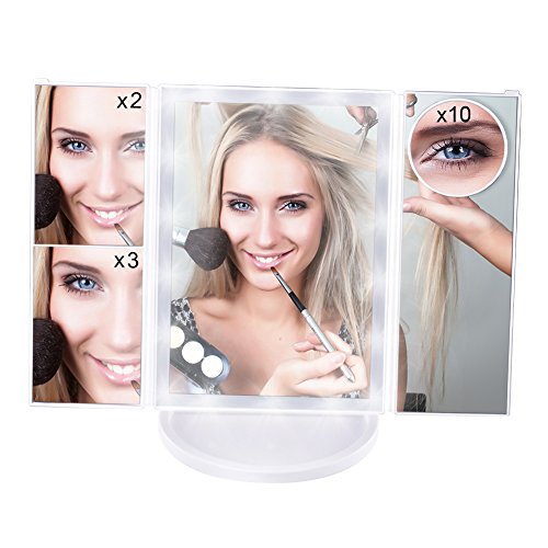 4 panels Magnification Spot Mirror: 4 panels 1X/2X/3X/10Xand a wide-angle viewing for you to see clearly your facial features and make a more perfect makeup with each detail taken care of.