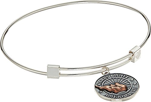 The Statue of Liberty inspires all to believe in limitless opportunity. She raises her torch to light the way for others, but her real light illuminates from within. Bearing her torch, we too brighten the world. We are Lady Liberty's movement of light and hope. When we CARRY LIGHT, we ignite the light in others, and create one light indivisible. Through the LIBERTY COPPER Collection ALEX AND ANI® is supporting the work of The Statue of Liberty-Ellis Island Foundation, Inc. The exclusive LIBERTY COPPER Collection features original copper preserved from the centennial restoration of the Statue of Liberty. Carry pieces of the most powerful icon of freedom and hope that exists. One flame has the power to ignite the world. Details: Sterling Silver finish. Adjustable sliding clasp allows for a customized fit. Made in the U.S.A. Measurements: Width: 1⁄5 in Diameter/Length: 2 7⁄15 in Charm Length: 7⁄9 in Charm Width: 7⁄9 in Weight: 0.4 ozFeature