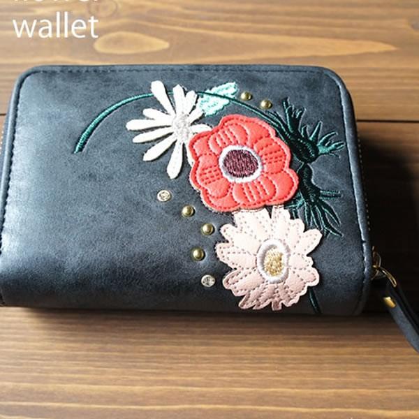 | 【即納】財布 レディース 二つ折り お花アップリケ 黒 ウォレット[ネコポス不可] 【財布 二つ折り レディース 黒 ブラック black 小銭入れ 3室 札入れ カード入れ ファスナー開閉 フラワー ワッペン L字ファスナー小銭入れ 財布 女の子 小学生 フラッパー】 | |