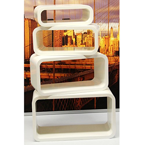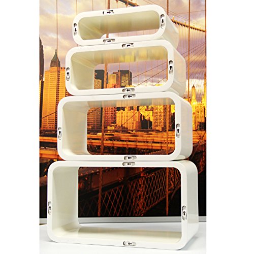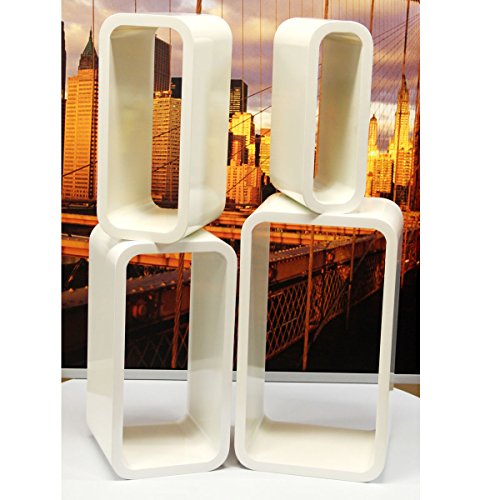 - Title : Set of 4 Large Wall Mountable Rectangle Wood Shelves , Glossy White , Also Can Be Used Free Standing