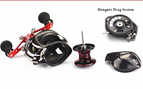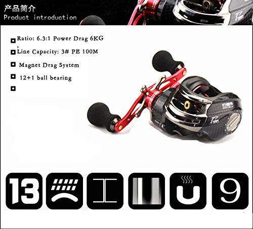 -. Binding : Misc. -. Brand : RG -. Color : Dark Grey -. EAN : 6912839409050 -. Feature : PERFORMANCE - Low profile design bait caster with a super silent high speed 6.3:1 / PROVEN - 12 + 1 shielded corrosion resistant ball bearings for super smooth casting, retrieve, and long life. / DYNAMIC - Two color anodized aluminum forged multi-ported whiffle-style spool offers maximum strength while reducing weight. / TOURNAMENT READY - The new RG legend bait caster has state of the art dual brakes with a quick, easy to fine-tune reliable centrifugal and magnetic brake system for superior casting control. / UNMATCHED - Precision cut brass gear structure and carbon fiber drag system . One year Guarranty! -. IsMemorabilia : 0 -. Label : RG -. Manufacturer : RG -. ProductGroup : Sports -. ProductTypeName : SPORTING_GOODS -. Publisher : RG -. Size : GR200 -. Studio : RG -. Title : Fishing Reel With Low-Profile Baitcasting Reel Ultra Smooth Magnetic Brake System 6.3:1 Gear Ratio Bait Casting Fishing Trolling Reel 12+1BB