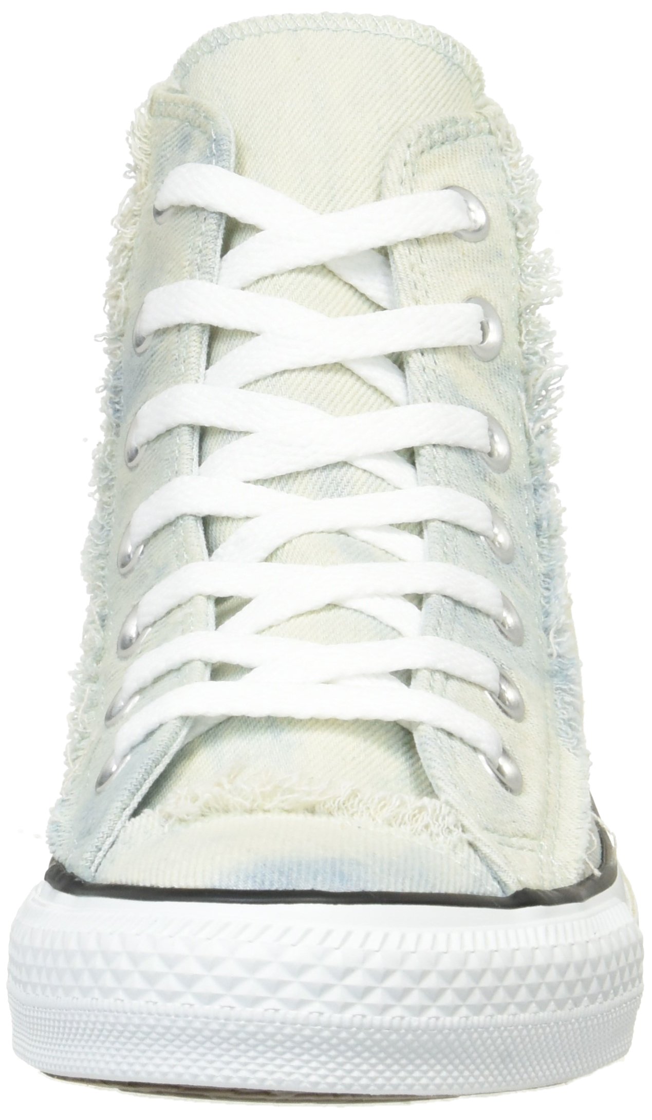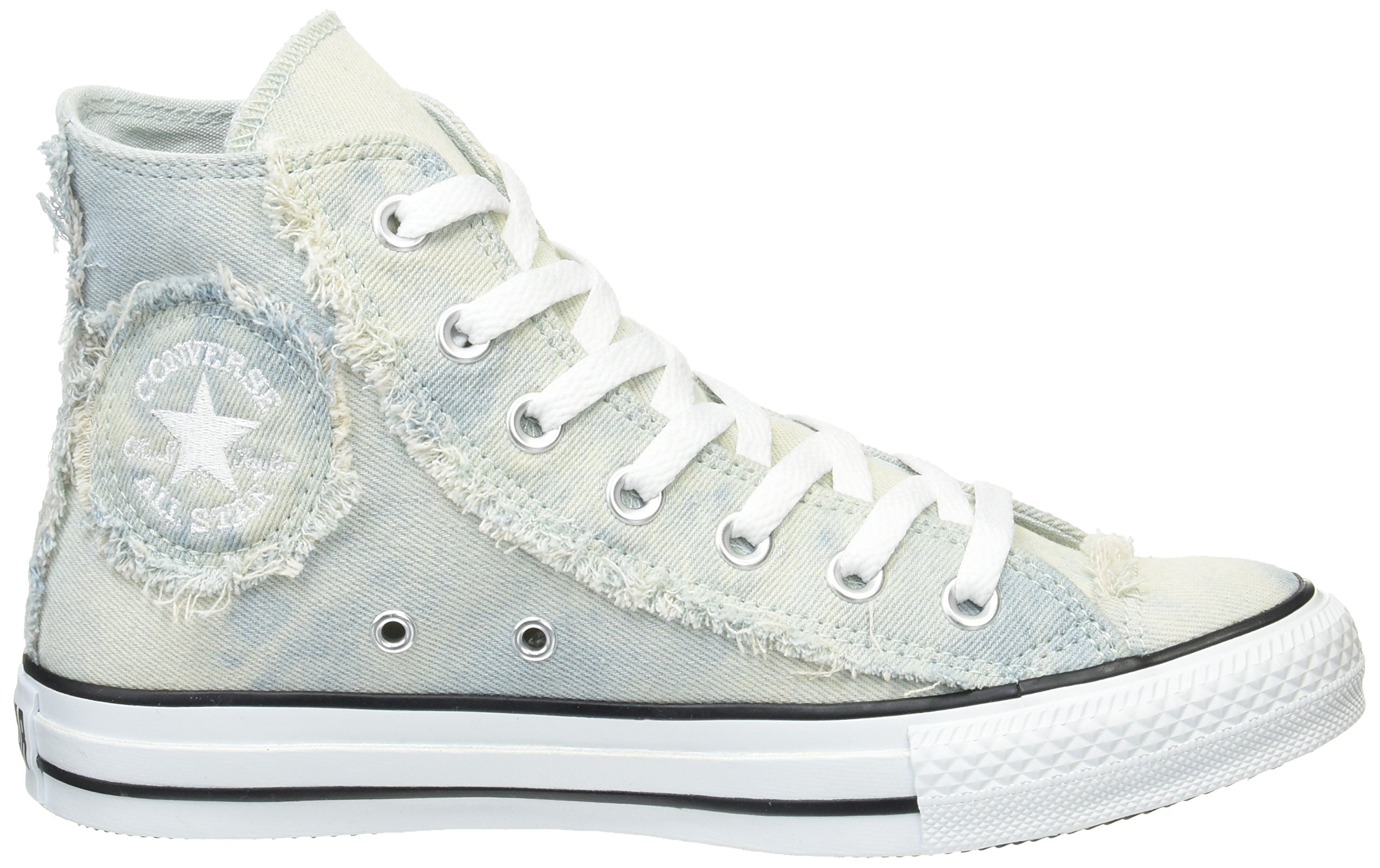 Bleaching-processed denim, stuck to detailed details such as fray processing applied to the eyelet decoration, heel strap, toe cap, ankle patch and lining as if the upper color had been transferred.