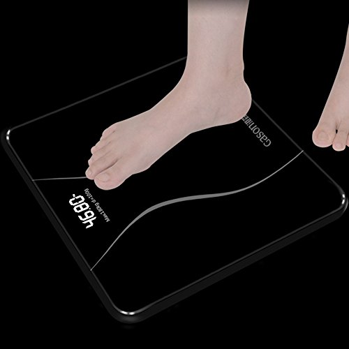 -. Feature : Auto power-on when you step on the scale,and auto shut down after leaving the scale for about 5 seconds. / 4 high-precision sensors according to the mechanical structure of the scale, rapid and accurate weighing to capture slight change. / 6mm thick tempered glass provides exceptional sturdiness, LCD backlight display is easy to read even in the evening, Non-slip feet will not scratch floors. / 2 Available units of measure: lb, kg; max weight capacity of 400lb /180kg; graduation increments of 0.2lb /0.1kg. / Power supplied by 2 AAA batteries (not included),Scale must be placed on flat, level & hard floor for accurate weight. 1-Year warranty and life time after sale support.