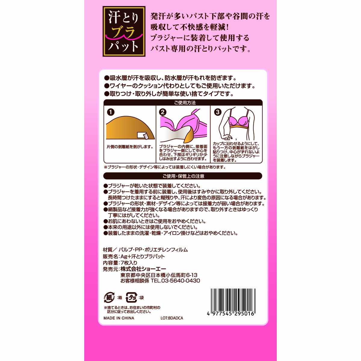 ● It is a disposable sweat pickup pad dedicated to bust to be used by being attached to a brassiere.