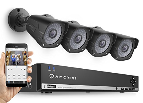 Amcrest UltraHD 3MP 4CH Video Security System - Four 2048TVL 3.0-Megapixel Weatherproof IP66 Bullet Cameras, 114ft IR LED Night Vision, NO HDD Included, HD Over Analog/BNC, Smartphone View (Black)