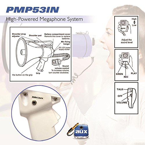 Pyle Megaphone Speaker [Audio PA Sound System] Built-in Rechargeable Battery | Siren Alert Mode | Save & Replay Mode | Aux (3.5mm) Input | 50 Watt (PMP59IR)