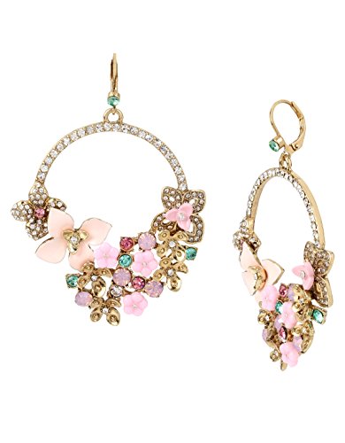 Give any day a summer glow with these fabulous floral wreath and pavé gypsy hoop earrings crafted by Betsey Johnson in gold-tone mixed metal. Approximate drop: 2-3/4".Feature