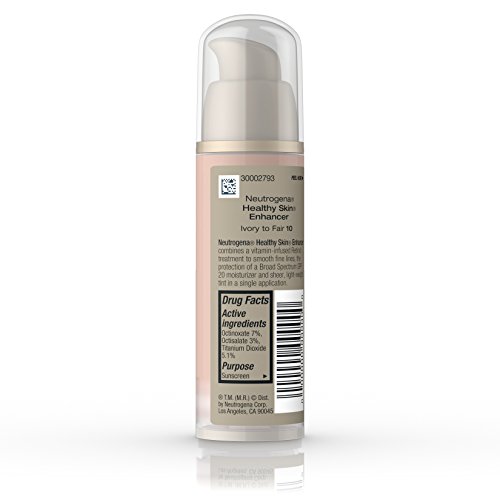 Enjoy the power of three daily essentials in one easy step with Neutrogena Healthy Skin Enhancer Broad Spectrum SPF 20. An effective alternative to foundation, this daily three-in-one product provides a sheer, natural tint, sun protection, and ingredients to help improve the appearance of your skin. The dermatologist-developed formula contains a vitamin-rich retinol treatment to visibly smooth fine lines and reduce signs of aging. This lightweight, non-comedogenic enhancer nourishes skin and protects against future sun damage with a weightless, broad spectrum SPF 20 moisturizer.Feature