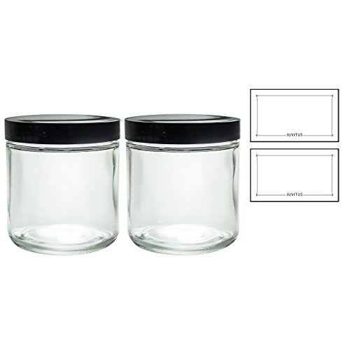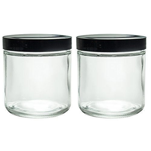 Large Clear Thick Glass Straight Sided Jar - 16 oz / 480 ml (2 pack) + Labels