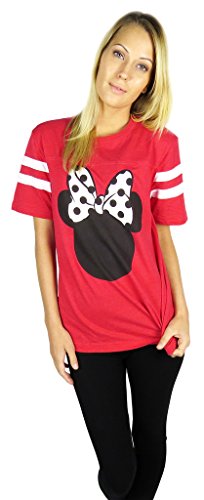 Disney Womens Minnie Mouse Varsity Football Tee Red