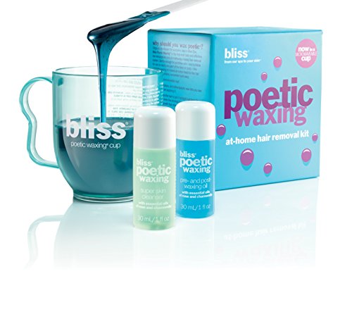 Originally developed for exclusive use in Bliss Spas, Bliss Poetic Waxing is the first-ever safe and effective, low-temperature and aromatherapy-based hair-removal system. Gentle enough for sensitive skin and suitable for use on nearly any part of the face or body, this complete waxing kit makes head-to-toe hair removal comfortable, convenient, and easy. This set contains: 5.3 oz microwaveable cup filled with Bliss Poetic Wax, 1.0 oz Bliss Poetic Waxing Super Skin Cleanser, 1.0 oz Bliss Poetic Waxing Pre- And Post-Waxing Oil, 3 x large spatulas, 3 x small spatulas, Free sample of an Ingrown Eliminating Pad, Complete waxing instructions.Feature