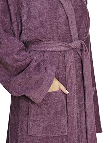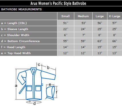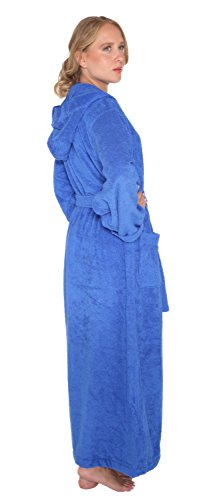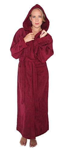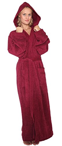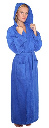 Binding : Apparel Product Description Arus Women's Pacific Style Full Length Hooded Turkish Cotton Robe. FULL LENGTH Wide Cut Style Turkish Terry Cotton bathrobe available in 4 Sizes (S - M - L - XL) and 6 colors with length up to 57", Pacific Style Bathrobe is designed for customers looking for a true ankle length bathrobe in a comfortable lightweight style. It has a self fabric belt with 2 belt loops for maximum comfort. Unit length is 3 - 3.5 lbs. per robe. Construction of the bathrobe is terry cloth toweling material on the outside and also on the inside for maximum absorbency. Sizes run Large, please refer to the measurements below to determine your size Detailed Bathrobe Length / Circumference Information: Size Small : 51" / 55" Size Medium : 53" / 59" Size Large : 56" / 63" Size XL : 57" / 66" What is so special about Turkish bathrobes? There are different qualities of cotton used in bathrobes. The highest quality is called the High Grade Cotton known for its softness. Turkish bathrobes are manufactured from the highest grade cotton with extra long fibers grown in the Aegean region resulting in unmatched absorbency, therefore; it is important to buy a 'Turkish Terry Cotton' bathrobe to get the highest quality when shopping for a bathrobe. 0