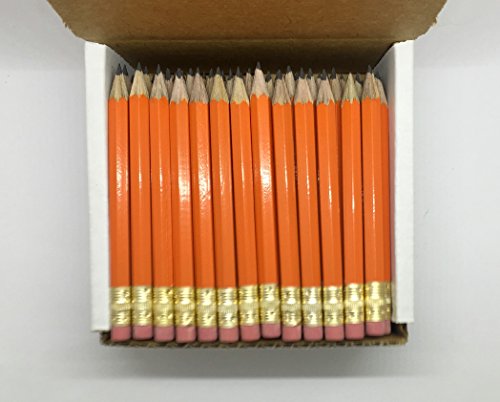 Half Pencils with Eraser - Golf, Classroom, Pew, Short, Mini, Small. Church, Non Toxic - Hexagon, Sharpened, #2 Pencil, Color - (Orange, Box of 72) Golf Pocket Pencils™