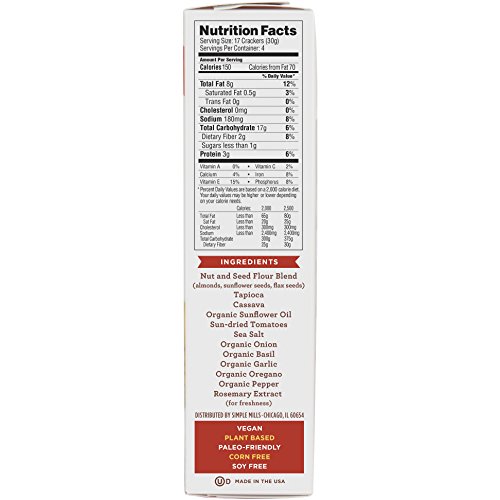Simple Mills Almond Flour Crackers, Sundried Tomato/Basil, 4.25 Ounce