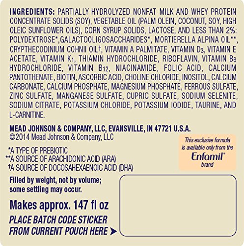 -. Feature : • Enfamil Reguline is an everyday infant formula designed specifically to promote soft, comfortable stools and help support digestive health / • Blend of 2 prebiotics, a type of carbohydrate also found in breast milk, proven in Enfamil Infant formula, to promote soft stools / • Easy-to-digest proteins and a Neuro Complete blend of nutrients, such as choline and DHA, as recommended by experts / • Has complete nutrition for infants through 12 months of age and can be used to provide comfortable feedings throughout your baby's first year / Enfamil is the #1 pediatrician-recommended formula