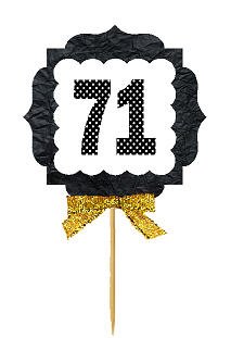71st Birthday / Anniversary Gold Ribbon Hand Crafted Novelty Cupcake Decoration Toppers / Picks -12ct