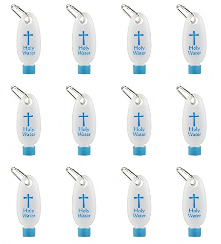 Travel Holy Water Bottle with Screw Top Lid on Caribiner Clip, 1.75 oz (Pack of 12)