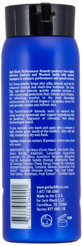 -. Binding : Health and Beauty -. Brand : Jack Black -. Color : no color -. Department : mens -. EAN : 6909120157752 -. Feature : Ultra-fine, talc-free formula quickly absorbs moisture to offer exceptional protection from friction and irritation, for refreshing comfort in the most demanding environments / Pure Cornstarch, Certified Organic Green Tea and Lavender soothe and refresh skin / Pure Cornstarch offers exceptional moisture absorption and helps prevent friction for maximum comfort / Organic Green Tea is a potent antioxidant with anti-inflammatory and antibacterial properties / Dry Down Friction-Free Powder is also great for using in shoes and as a dry shampoo -. IsAdultProduct : 0 -. IsAutographed : 0 -. IsMemorabilia : 0 -. Label : Jack Black -. LegalDisclaimer : This product can be shipped to any country to which SkinStore currently ships -. Manufacturer : Jack Black -. Model : 4020 -. MPN : AJB-115 -. NumberOfItems : 1 -. PackageQuantity : 1 -. PartNumber : AJB-115 -. ProductGroup : Prestige Beauty -. ProductTypeName : LUXURY_BEAUTY -. PublicationDate : 2012-11-19 -. Publisher : Jack Black -. ReleaseDate : 2013-10-05 -. Size : 6 oz -. Studio : Jack Black -. Title : Jack Black Dry Down Friction-Free Powder, 6 oz. -. UPC : 882304629343