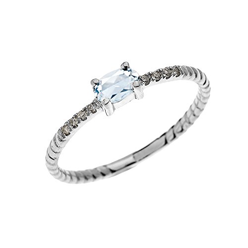 -. Title : Dainty 10k White Gold Diamond and Solitaire Oval Aquamarine Rope Design Stackable/Proposal Ring