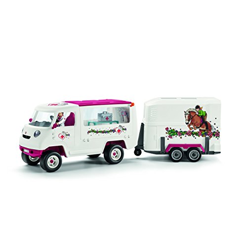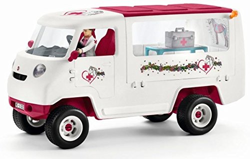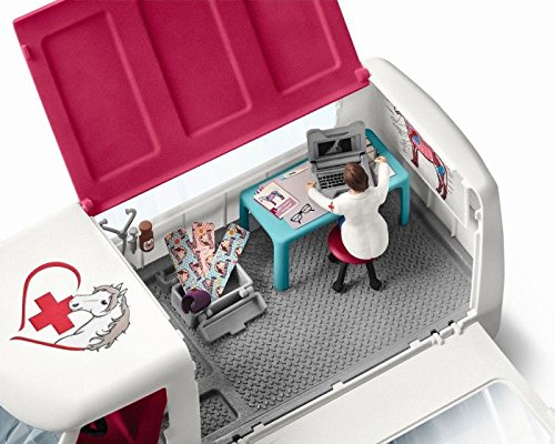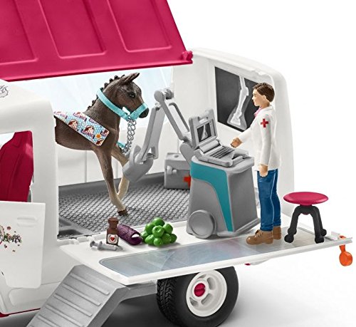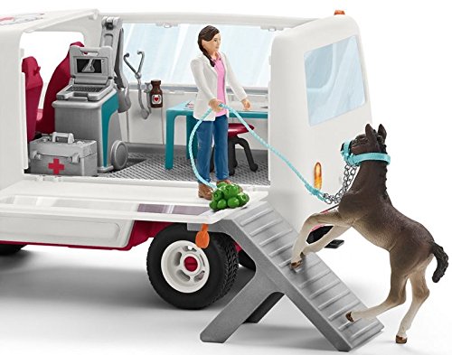 The Vet is driving as fast as she can to the scene of an urgent emergency: a Hanoverian foal has been injured! she examines the animal with the mobile x-ray machine that she transported in the car's spacious boot. To make sure the foal gets better again quickly, she gives it an injection with medicine from her medical bag and then records her diagnosis on her laptop. All the Schleich figures are lovingly hand-painted with detailed modelling and allow kids to learn while they play.Feature