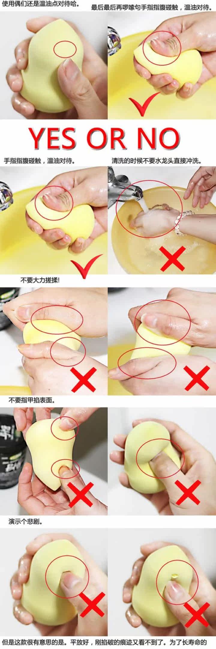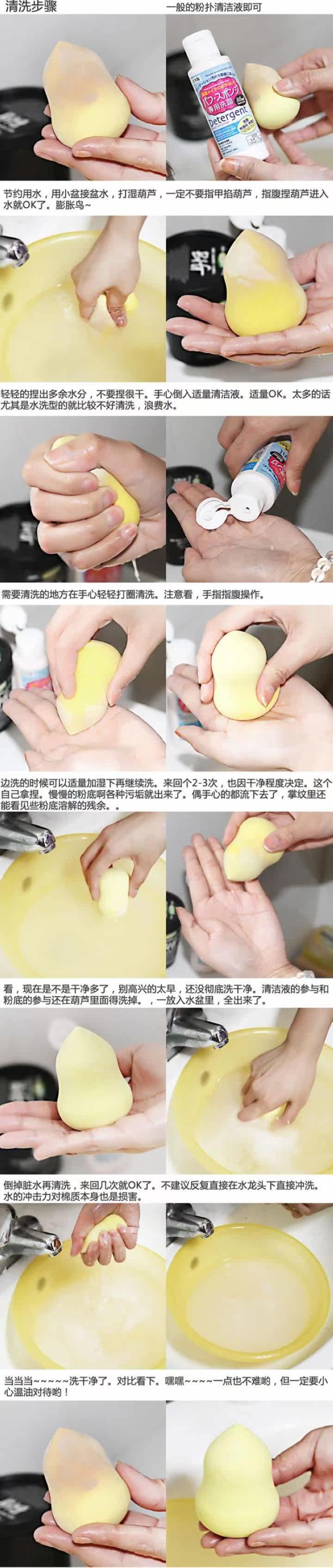 但是,水的温度建议是冷水,不是冰水不是温水更不能是热水!非乳胶性质的海绵质体建议不要热水泡,米米不是专家,但是曾经有杯具的被泡变形的经历。一边热水泡一边洗,洗完后就是不是它了。囧的。而且热水洗,总觉得粉底还在上面。有点类似偶们大姨妈来鸟,洗小内内不要用热水泡的原理似的。但我真心不懂,求解。