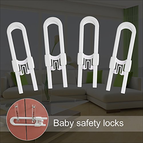 Child Locks for Cabinets - Sliding Cabinet Locks U Shaped Baby Proofing Locks Child proof Cabinet Sliding Door Locks for Knobs and Handles, 4 Pack