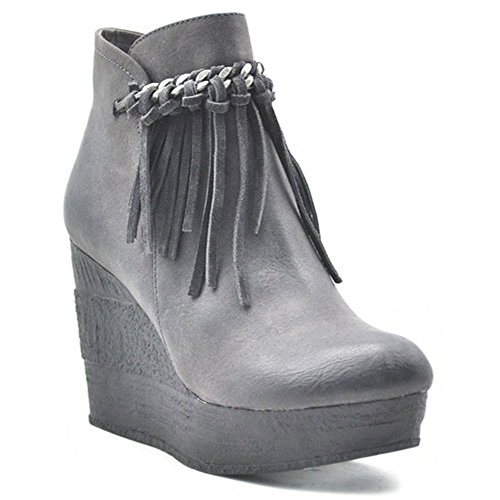 Product DescriptionFringe and chain wedge bootie0