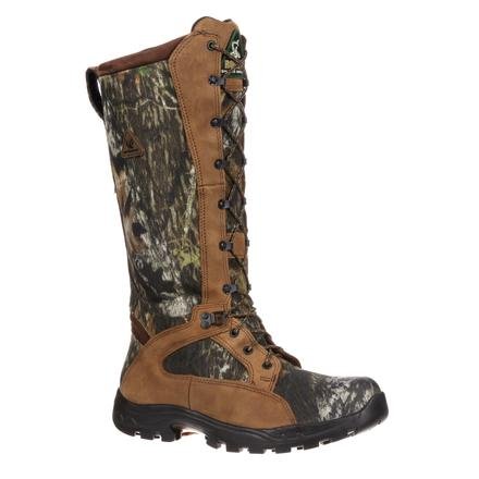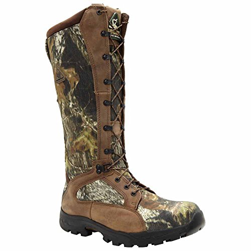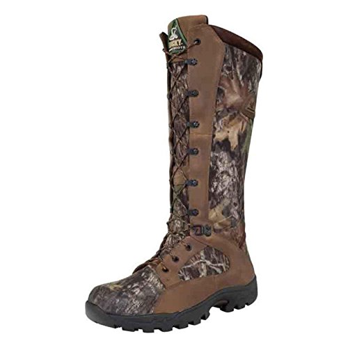 Studio : Rocky Publisher : Rocky Binding : Apparel Product Description If you're not prepared, a run in with any wild animal has the potential to turn ugly, especially with snakes. The Rocky ProLight Waterproof Snakeproof Hunting Boot will ensure your personal safety. They protect against most North American snakes; including rattlesnakes, copperheads, and coral snakes. To keep your feet, ankles, and lower legs safe, these hunting boots are designed with sixteen inches of snakeproof protection. Plus, they keep your feet dry in any condition. A full-grain leather outlines the Mossy Oak camouflage nylon, a material reinforces the Guaranteed Rocky Waterproof construction. The ProLight BioMech outsole provides traction and stability on uneven terrain, and the PU/Rubber outsole adds a second layer of defence against wet feet. Remain safe and dry in these snake proof boots. 0