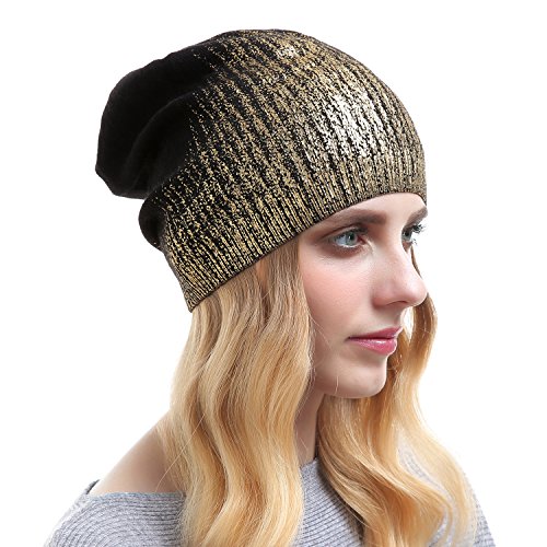 | Beanie Hats For Women - Knit Cashmere Hat Caps Winter Fashion Bling Beanies |