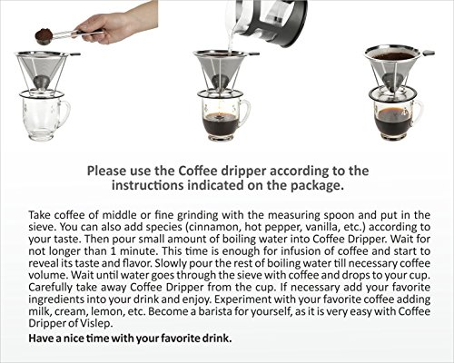 -. Title : Vislep-Best Clever coffee dripper Stainless steel 18/8 (304) - Paperless and reusable Coffee dripper stand - Pour over coffee cone permanent for your cup-Metal Large Coffee brewer stainless (1-4cups)