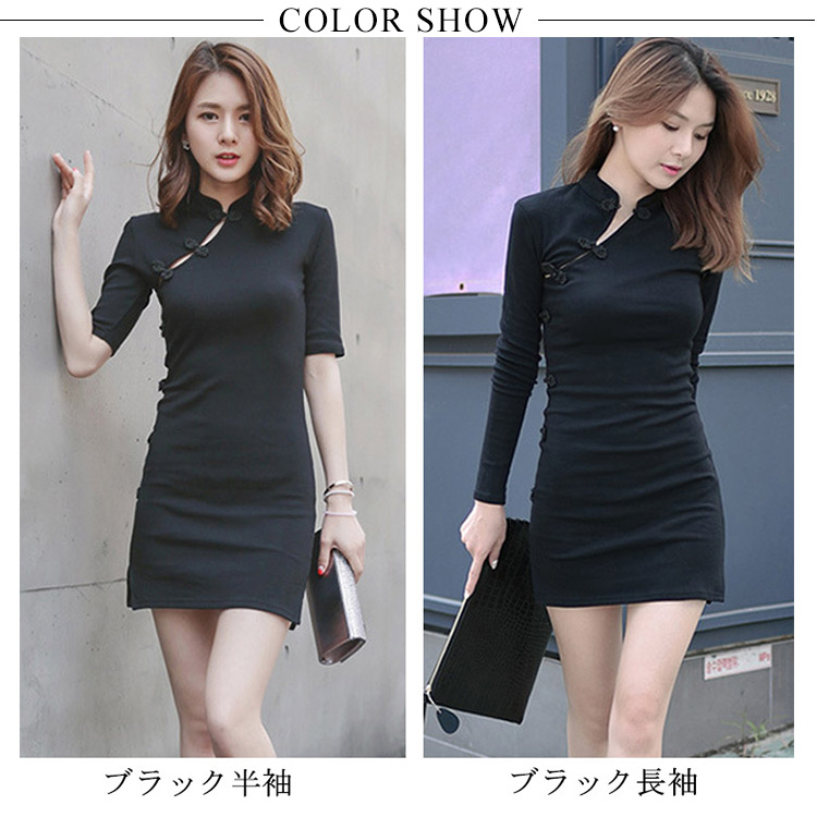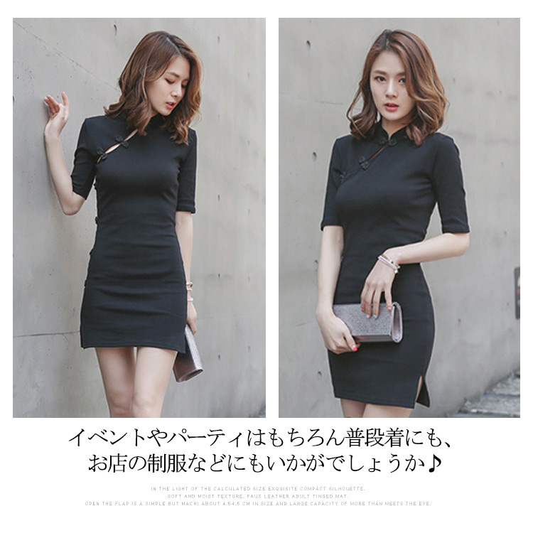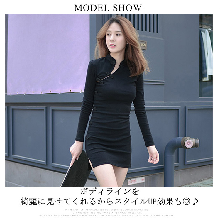 | 中国風合い溢れるチャイナドレスの登場です★ボディラインを綺麗に見せてくれるからスタイルUP効果も◎♪フラワー模様のチャイナボタンでまたサイドにはスリット入りなどこだわりさりげない肌見せと、チラリとみえる脚がメンズをそそるワンピです♪イベントやパーティはもちろん普段着にも、お店の制服などにもいかがでしょうか♪ | |