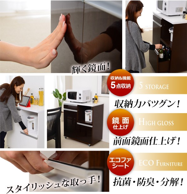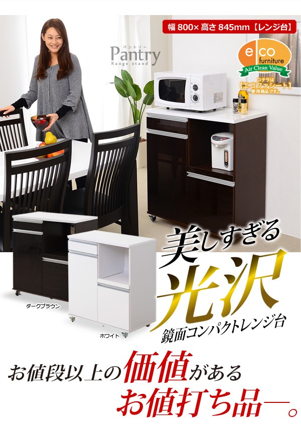 【商品について】■サイズ:外寸:(約)幅80×奥行き44.8×高さ91cm■カラー:ダークブラウン ホワイト■素材:材質:パーチクルボード、MDF表面加工:プリント紙化粧合板、ポリエステル化粧合板、PVC※鏡面仕上げ(ハイグロス加工)※背面化粧仕上げ※2口コンセント(合計1500W)※スライドレール採用■その他:生産国:中国・梱包重量:約40kg・お客様組み立て商品です。(組立目安時間:60~100分前後) ※メーカー直送品、商品代引き不可
