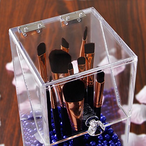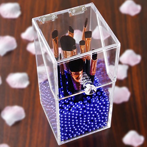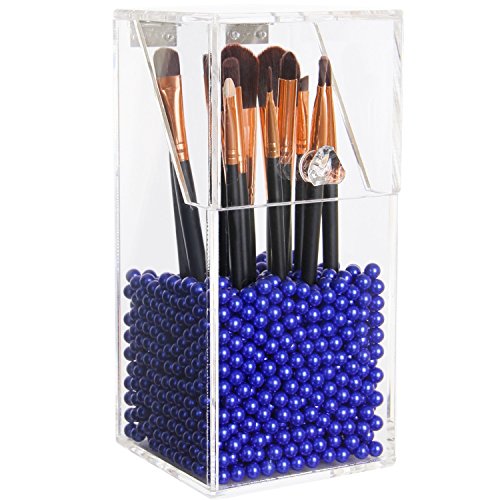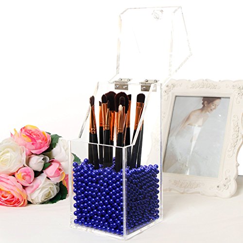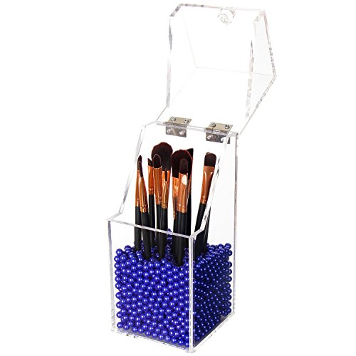 PuTwo Makeup Brush Holder Dustproof Storage Box Premium Quality 5mm Thick Acrylic Makeup Organizer, Blue Pearl, Small, 59.97 Ounce