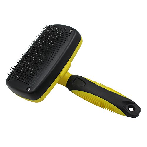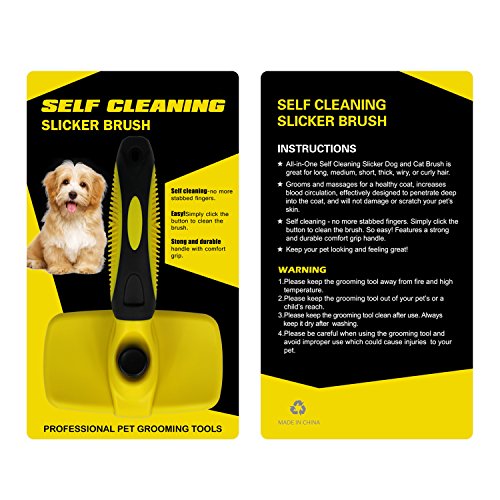 - PET GROOMING BRUSH - Perfect for your both long hair and short hair Dogs / Cats / Puppies. The bristles are stainless steel pins, which are fine bent wires designed to penetrate deep into the coat. Self Cleaning Slicker Brush don’t scratching your pet's skin.