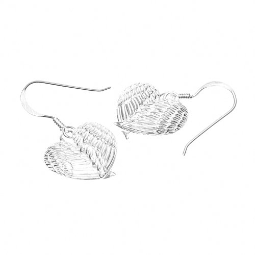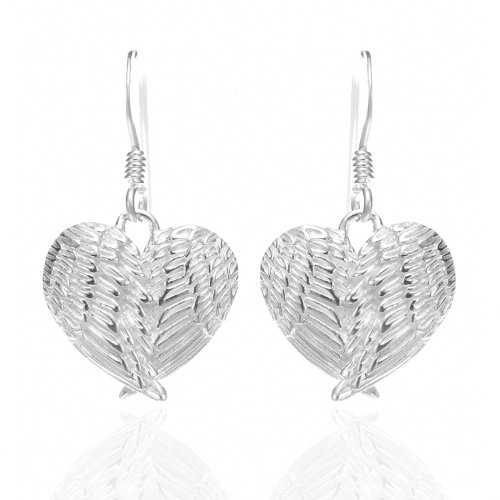 -. Title : 925 Sterling Silver Angel Wings Heart Feathers Dangle Earrings 1.2" - Nickel Free