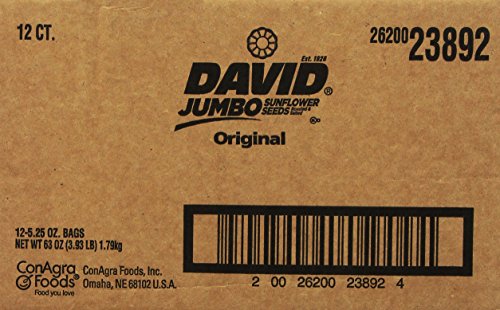 Contains twelve (12) 5.25-ounce bags of DAVID SEEDS Original Jumbo Sunflower Seeds