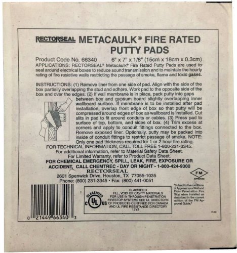 Rectorseal 66335 7-Inch by 7-Inch by 1/8-Inch Metacaulk Fire Rated Putty Pads