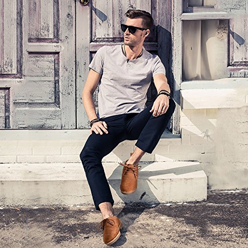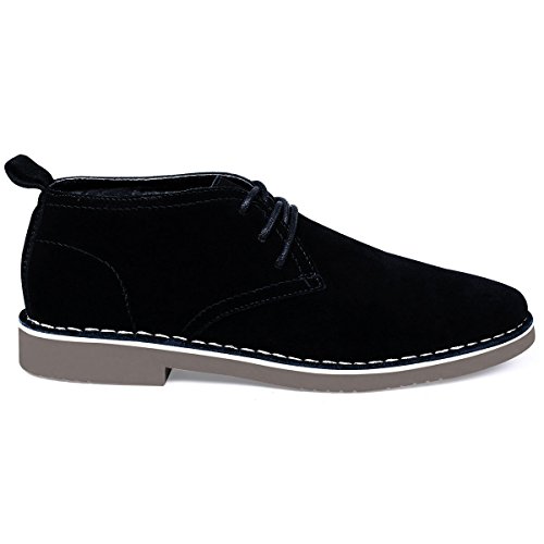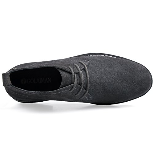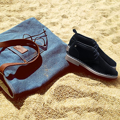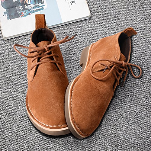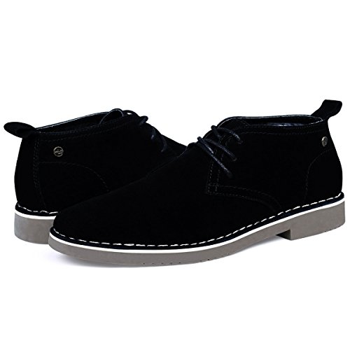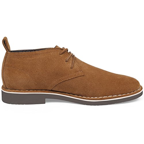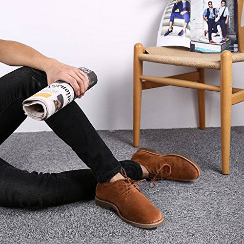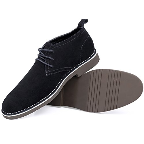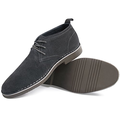 Product Features: -Style: suede chukka boot -Occasion: casual -Genuine leather: Featuring gunuine suede cowhide leather upper, smooth and comfort; Match with breathable cushioned leather insole and soft moisture-wicking microfiber lining to keep your feet dry and odor free. -Durable outsole: Equipped with a shock-absorption synthetic outsole, non-skid and providing lasting durability. With clear ribs for greater grip and offers all-day support. -Fashion elements: 6-eyele lace up closure for secure hold; contrast stitch detailing, evenly and tidy, for added style yet durability; Tonal pull-tab for easy wear.