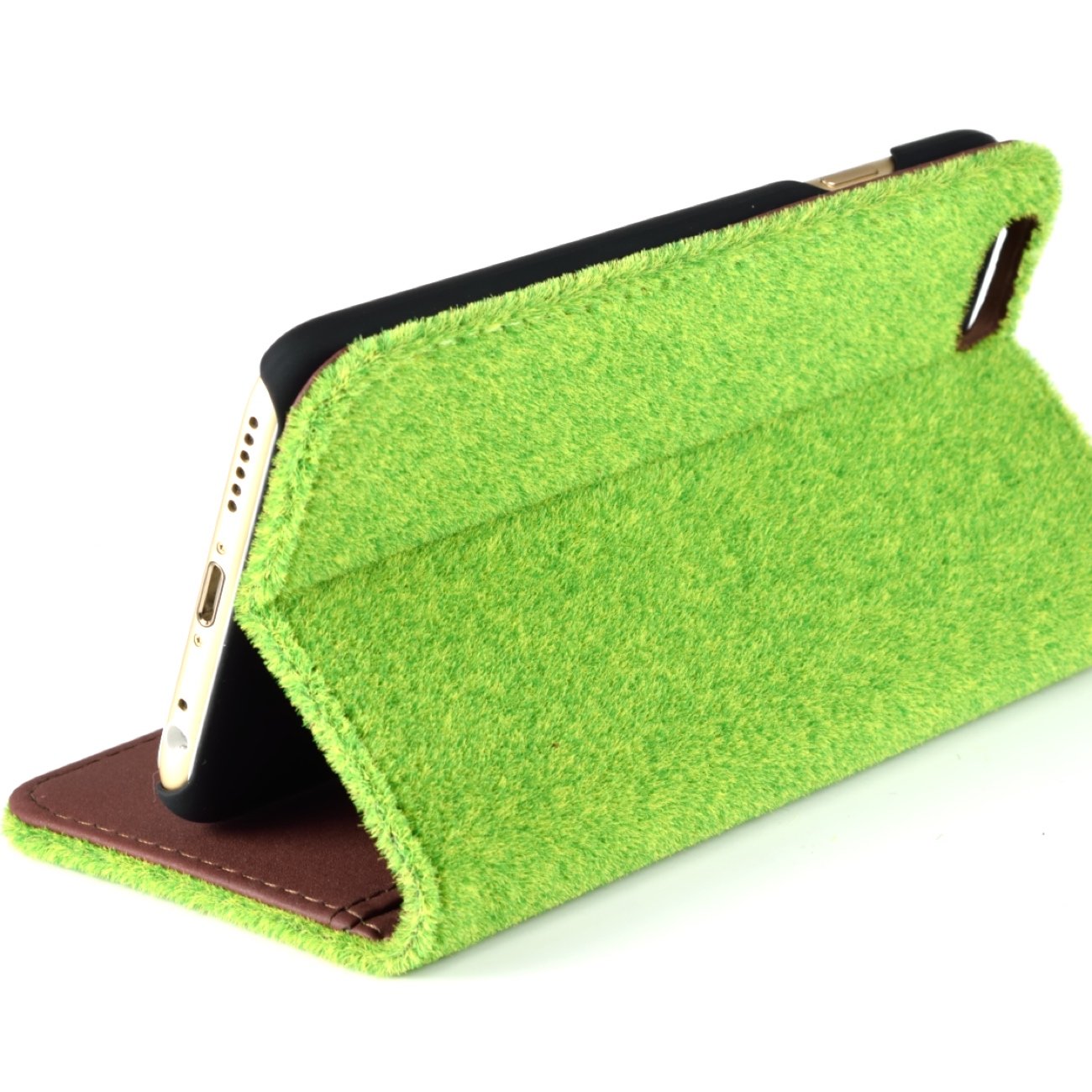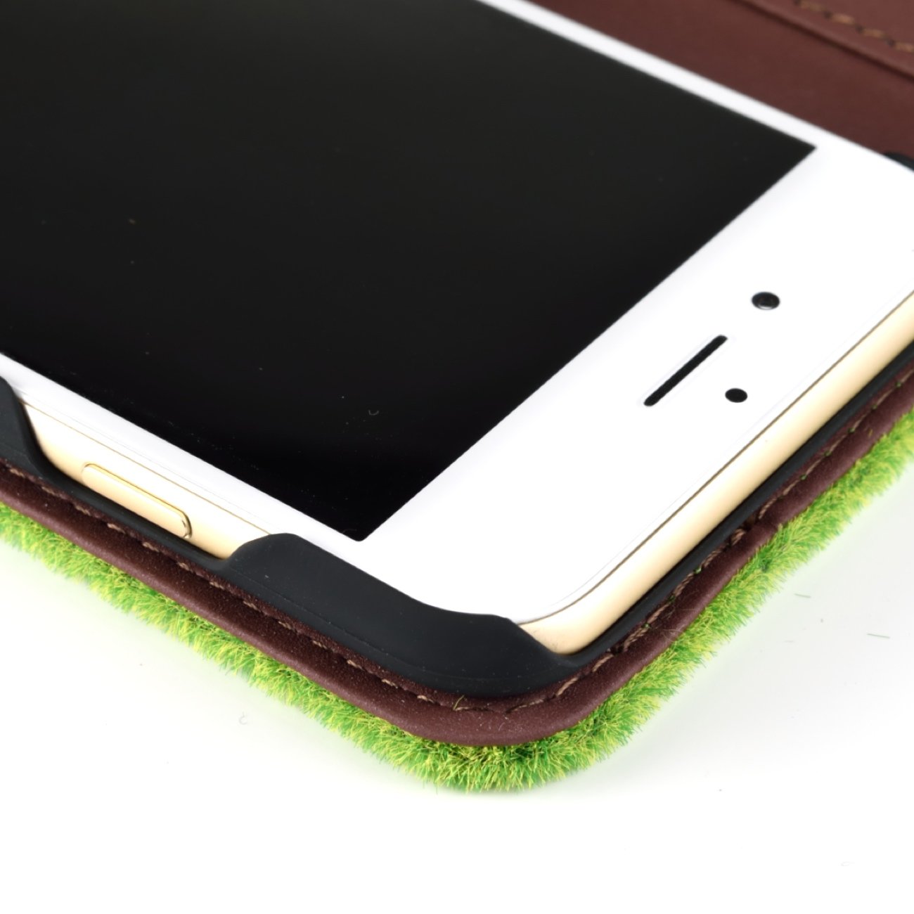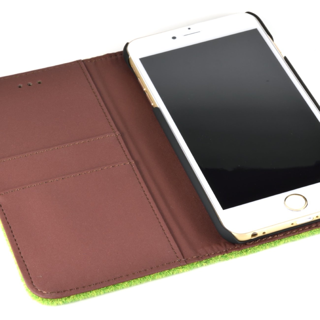 In accordance with each park, we reproduced the texture and hand feeling of the grass by implanting piles thoroughly sticking to a blend of colors, upright on the side of the case and edges with the piles standing vertically.