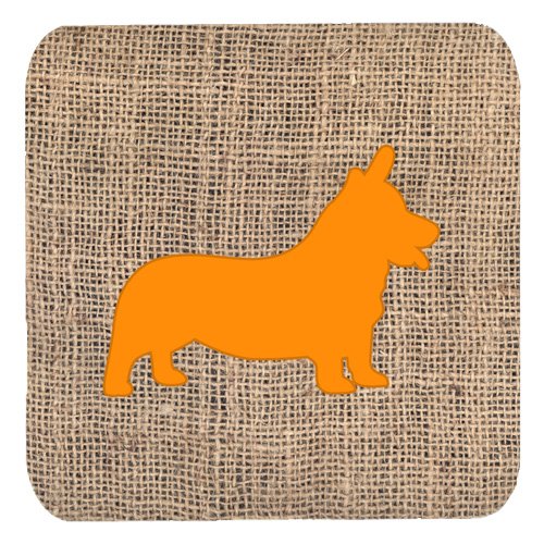 Caroline's Treasures BB1069-BL-OR-FC Corgi Burlap and Orange Foam Coasters (Set of 4), 3.5" H x 3.5" W, Multicolor
