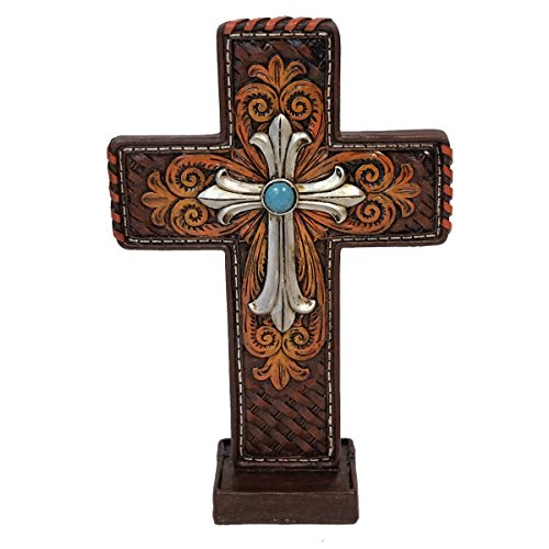 LL Home 15042 Standing Cross Tooled Leather Silver Cross