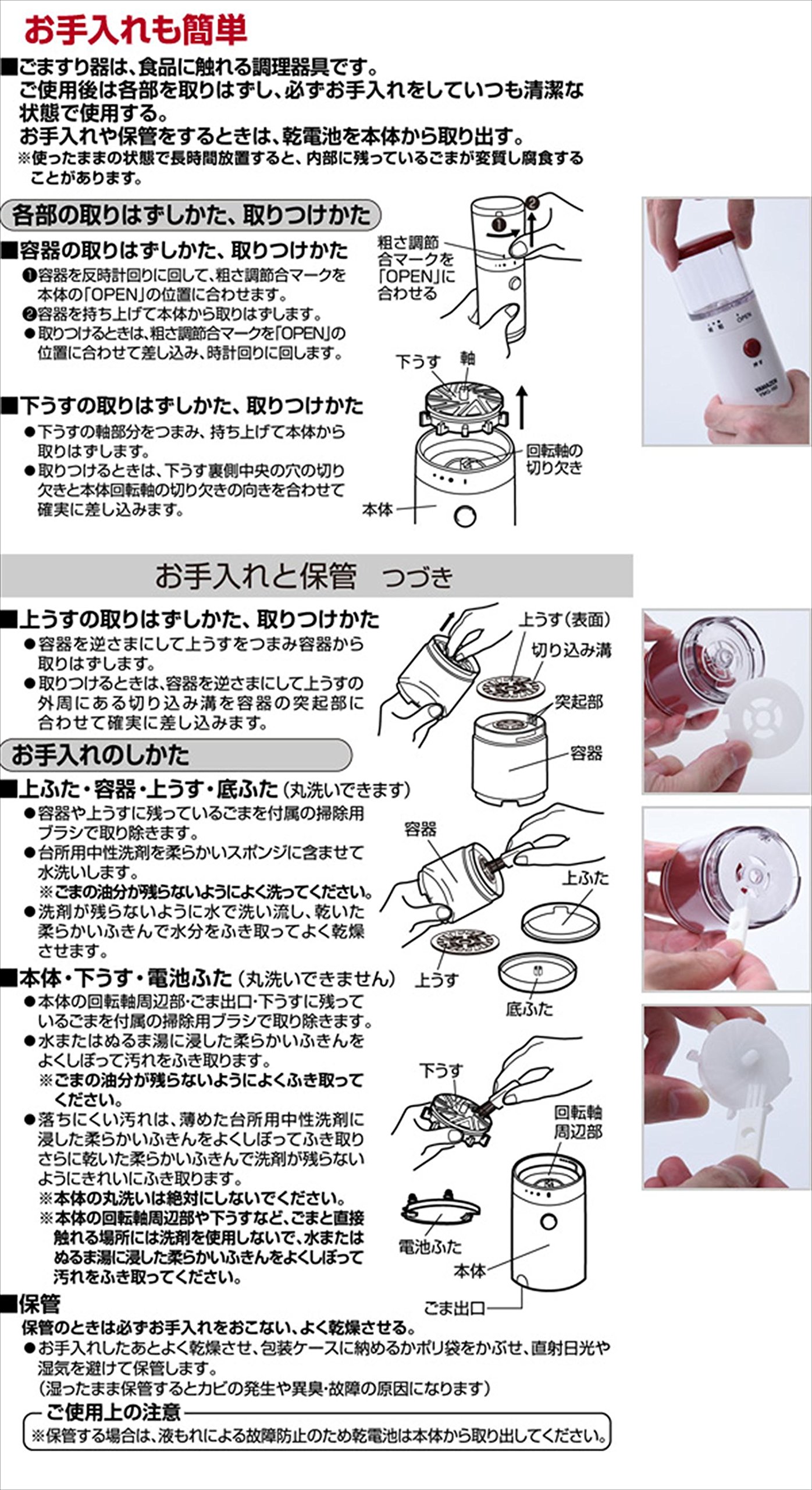 ● Sesame roughness can be adjusted in 3 steps (fine grinding, pouring, rough grinding)