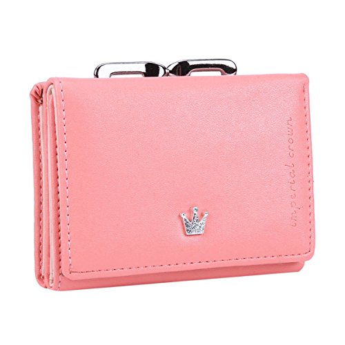 -. Feature : Made of PU / Fashion snap closure and kiss-lock, a small metal crown ornament. / 1 folded cash slot, 1 photo window,4 card slots are for credit cards,delicate coin pocket with kiss-lock. / Mini trifold wallet is suitable for every fashion women easy to carry in daily. / Measurement approximately: 10.5x8.5x3CM (4.13x3.34x1.18inches)