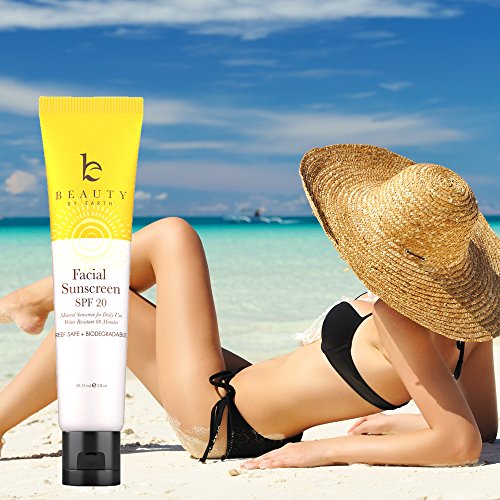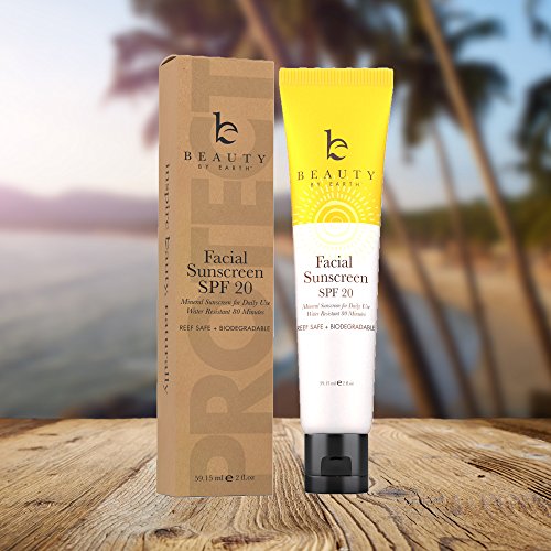 -. Feature : ALL NATURAL & ORGANIC INGREDIENTS: Welcome to a facial sunscreen without the chemicals. Effective, moisturizing, soothing, SPF 20 sun protection for your face without the toxins, GMOs, gluten or soy. This formula is reef and marine safe, can be used in eco parks and is water resistant. / ANTI-AGING & FIGHT WRINKLES: Beauty by Earth's face sun block protects your skin from sun damage and signs of early aging. Sun damaged skin leads to sun spots, wrinkles, fine lines and early aging. Stay protected. / MOISTURIZE AND SOOTH: This cream with SPF 20 protection contains moisture filled ingredients such as organic aloe vera, coconut oil, jojoba oil, cucumber extract and much more. / NON GREASY DAILY WEAR: Wear this sunscreen under your makeup as part of your daily routine to keep your skin protected. Broad spectrum UVA and UVB protection all day long. / ONLY THE BEST RESPONSIBLE SOURCING: Our sunscreen is manufactured using all natural and organic ingredients in the United States.